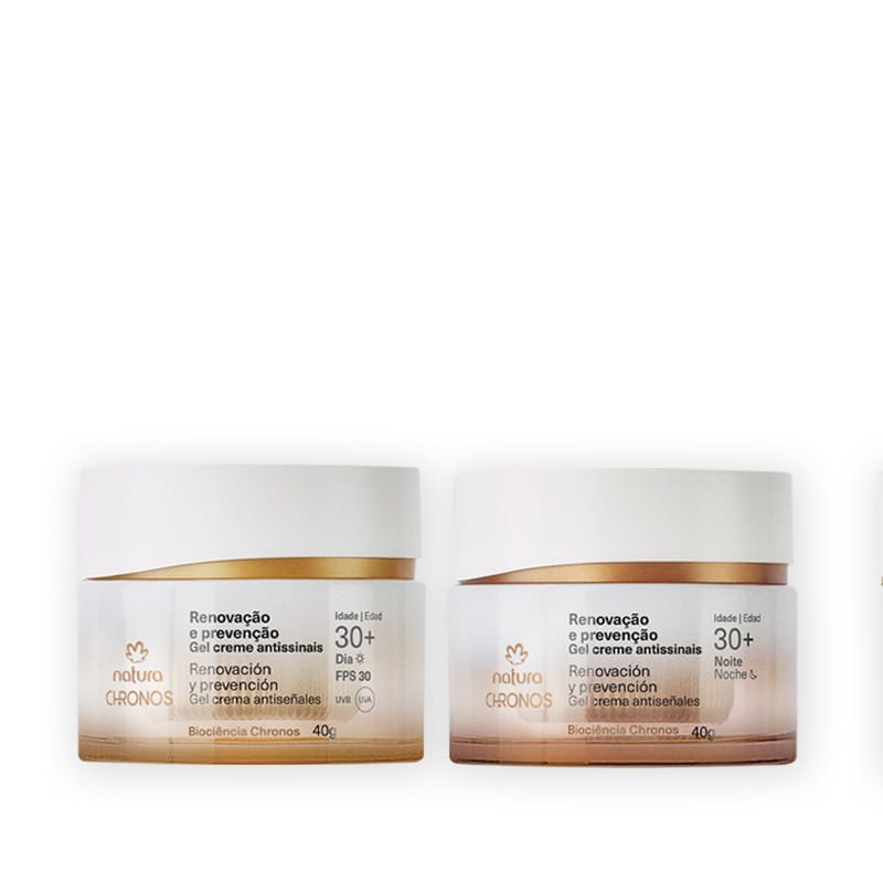 Aprovecha el Kit Antiseñales Día y Noche 30+ Chronos Natura 40 g y llévate 1 Gel Crema Antiseñales Renovación y Energía 30+ Noche Chronos Natura 40 g + 1 Gel Crema Antiseñales Renovación y Energía 30+ Día Chronos Natura 40 g.